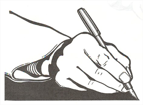 > Hånd underskriver