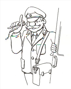> Konduktør før afgang klipper billet