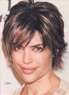 In the short hair department, Soap Talk's Lisa Rinna is one of our all-time favorites! Recently, the brunette had her thick mane snipped shorter than ever, with flicked-out edges and diagonal, piecy fringe taking the spotlight.