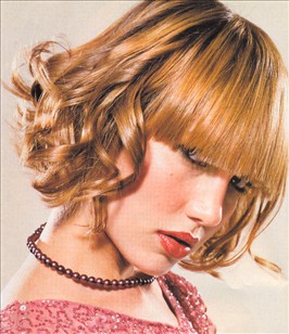 Ready for a really good time? Transform your bob into an extra-spe­cial style by blowing the long fringe super­-smooth and curling up the back. Use a medi­um-diameter iron to curl or swirl separate strands; do not brush through. The change from straight takes 10 minutes.