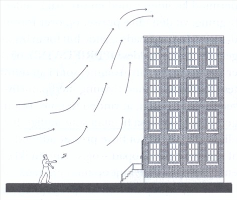 Du kan også prøve at sende en papirflyver af sted fra et vindue i en bygnings vindside. Hvis alt går godt, vil flyveren blive grebet af de opadstigende luftstrømme og stige op over dig. Men ofte sker der bare det, at flyveren bliver sendt direkte tilbage mod muren, og derfor foretrækker jeg selv at flyve fra vinduer i en bygnings læside. Selvom man ikke får en mulighed for at udnytte de opadstigende vinde, vil flyveren kunne flyve meget langt og vil måske oven i købet også blive båret oppe af opadstigende varm luft i området.
