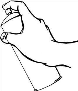 > Hånd med spraydåse
