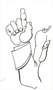 > Løftet pegefinger