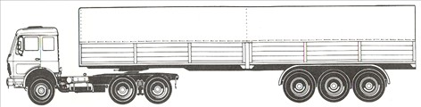 > Lastbil trækker boogie sættevogn 3 aksler pressenning